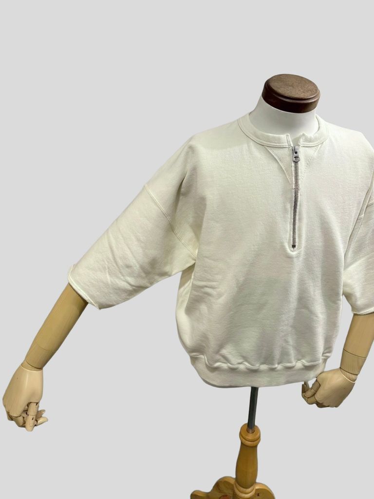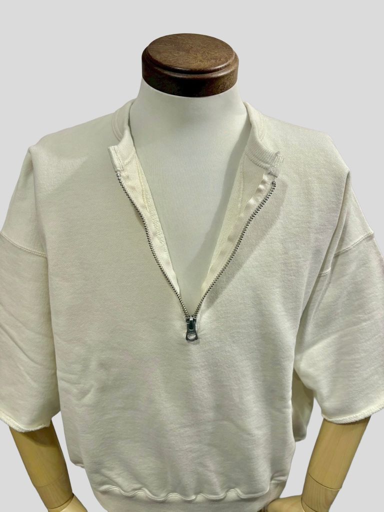 LW Half Zip Chop Sleeve / ハーフジップ 半袖スウェット / ホワイト / ユニゾンスペシャル